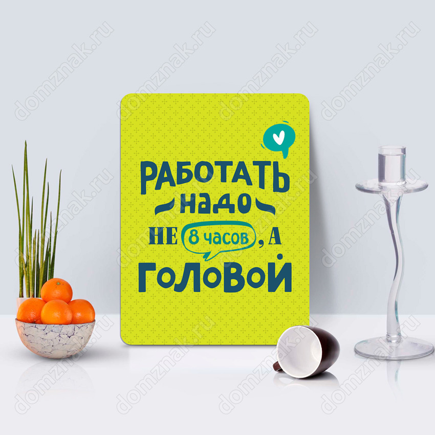Табличка «Работать надо не 8 часов, а головой»