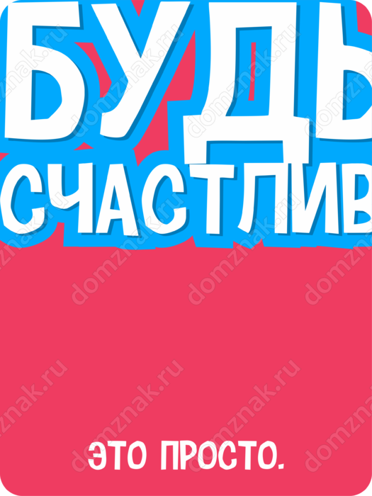 Табличка «Будь счастлив это просто» изготовлена из пластика ПВХ, толщиной 4 мм. Изображение наносится по технологии УФ-печати. Табличка предназначена для использования как в помещении, так и на улице.